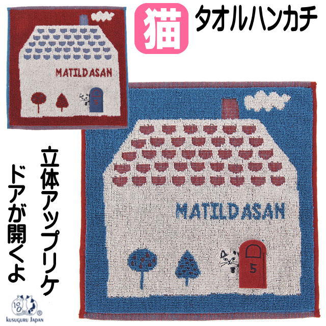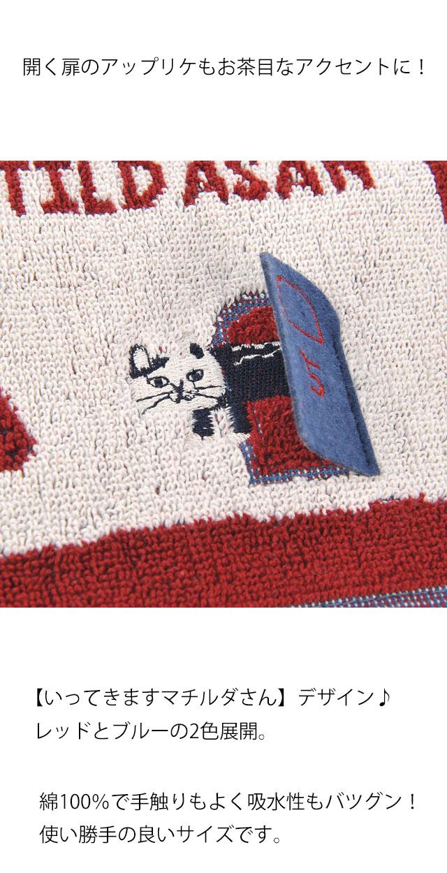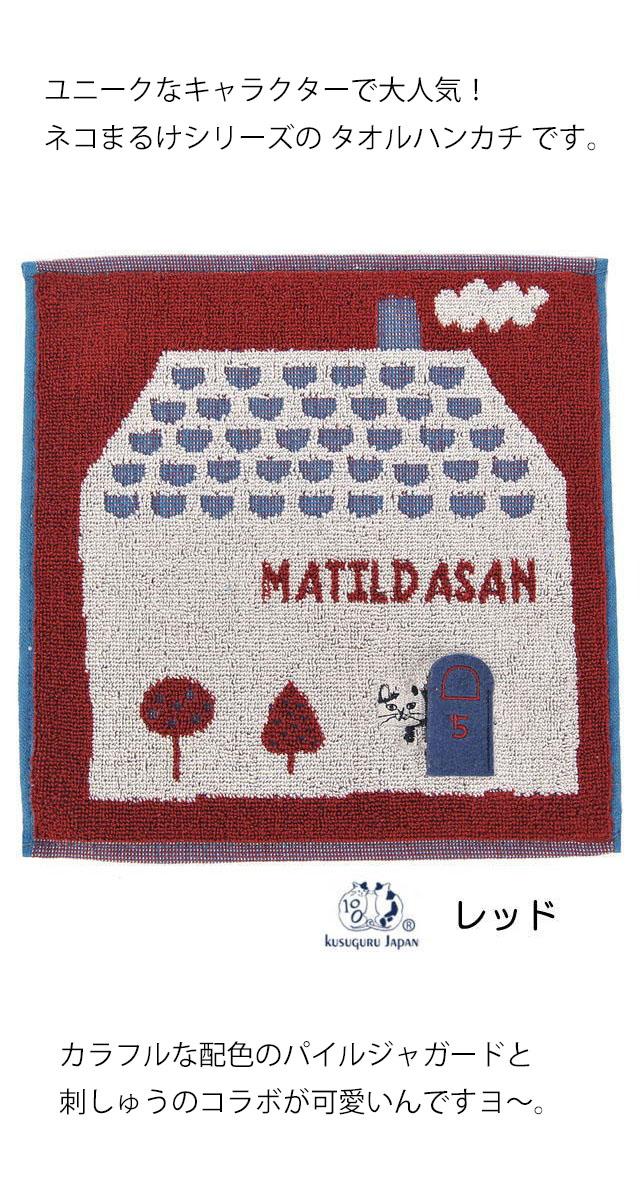 タオルハンカチ ネコ柄 ネコまるけ マチルダさん 綿100% 25×25cm 刺しゅう ハンドタオル 手拭き アップリケ 猫雑貨 猫グッズ