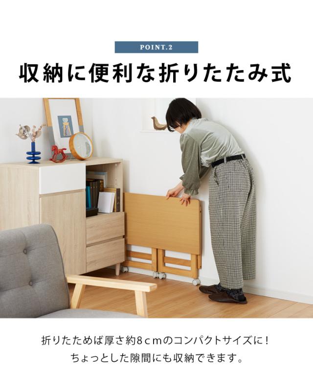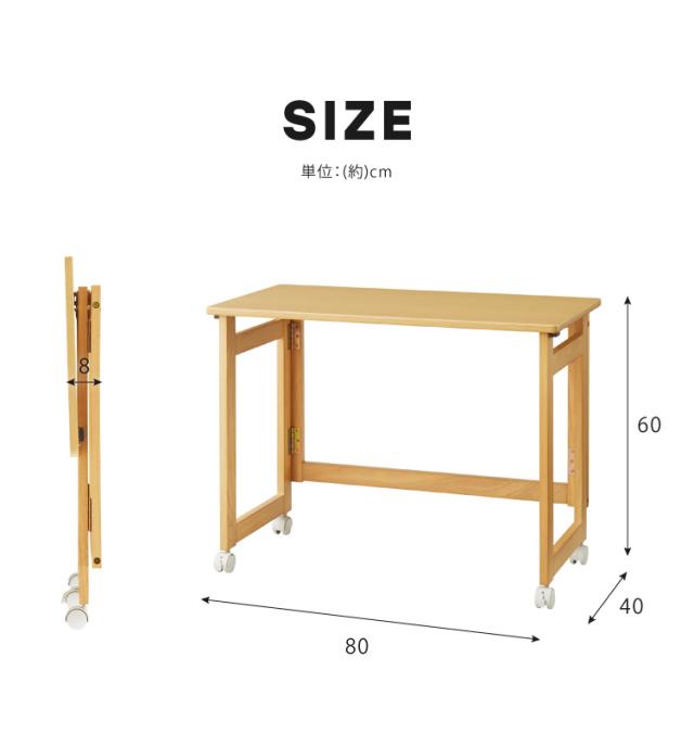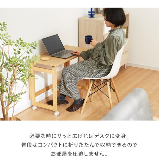折りたたみ デスク テレワーク 木製 2WAY キャスター付き 80×40 高さ55 テーブル 机 在宅 リモートワーク 折りたたみデスク 折りたたみテーブル 折り畳み おしゃれ(代引不可)【送料無料】