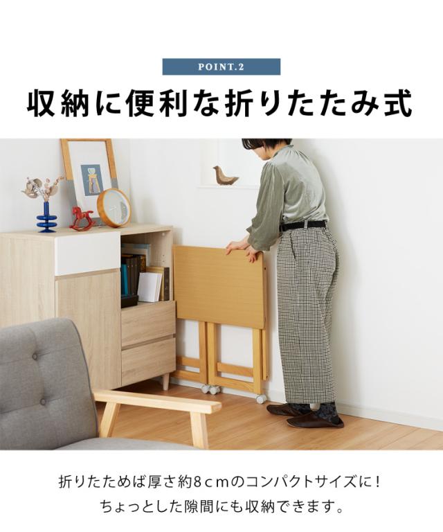 折りたたみ デスク テレワーク 木製 2WAY キャスター付き 80×40 高さ71 テーブル 机 在宅 リモートワーク 折りたたみデスク 折りたたみテーブル 折り畳み おしゃれ(代引不可)【送料無料】