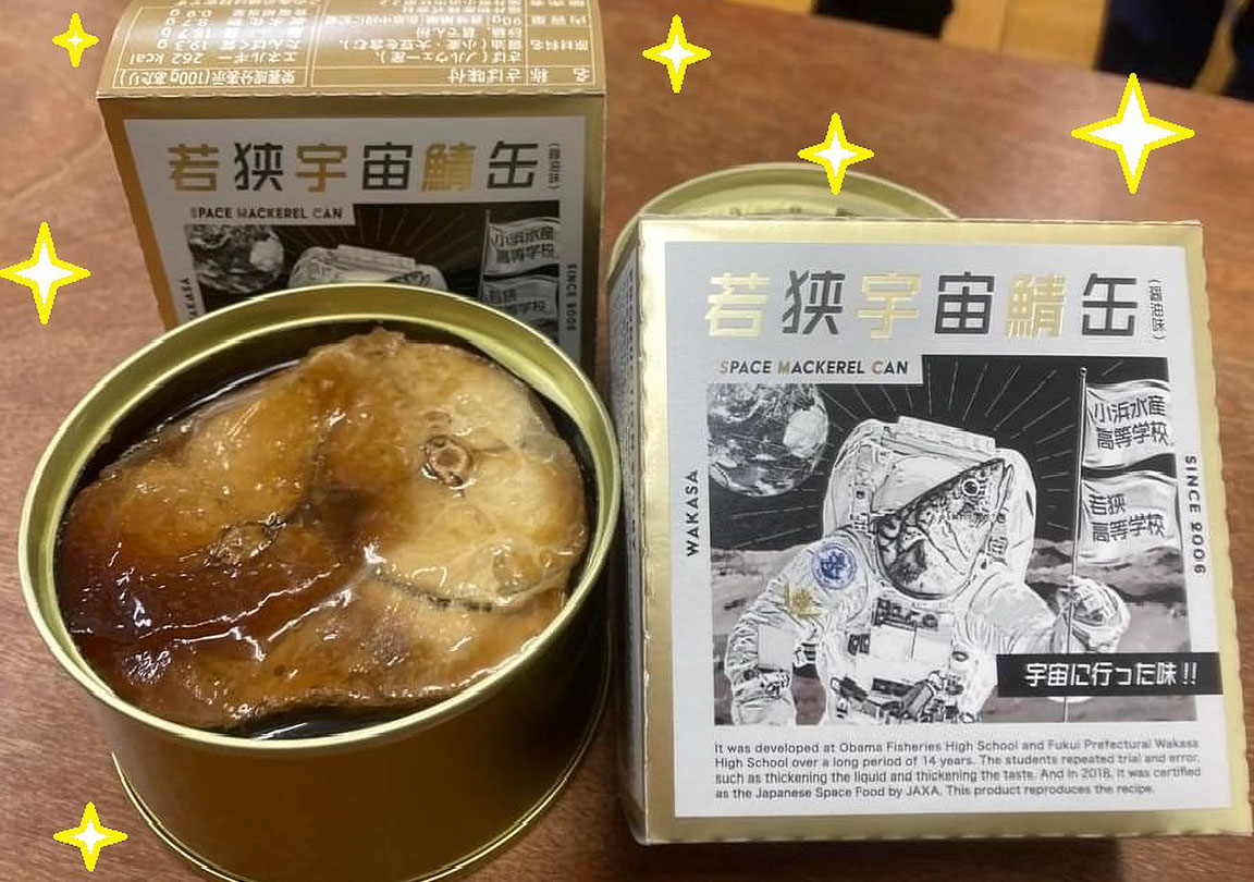 その第1弾が「若狭宇宙缶詰」です。県立若狭高校海洋科学科が作り出したJAXA認定宇宙日本食鯖缶をより多くの方に食してもらいたいという想いから、三者それぞれの力を掛け合わせ、量産できる缶詰にしました。宇宙に行った「味」をお楽しみください。