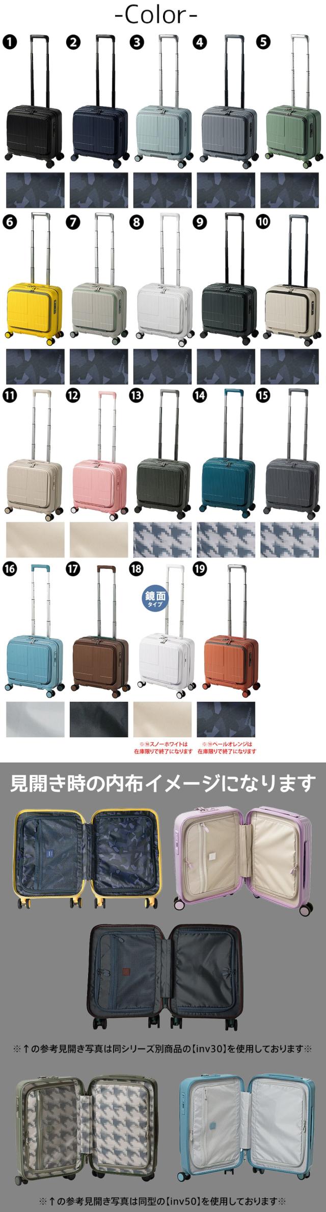 | 商品 | ビジネスキャリー スーツケース キャリー ハード INV20 小型 ファスナータイプ | ||