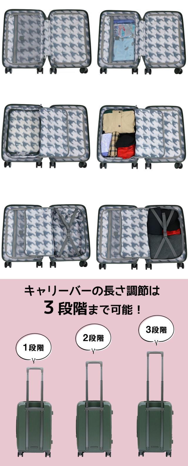 機内持ち込み可能(国際線、国内線100席以上)、キャリーバーは3段階調整が可能。