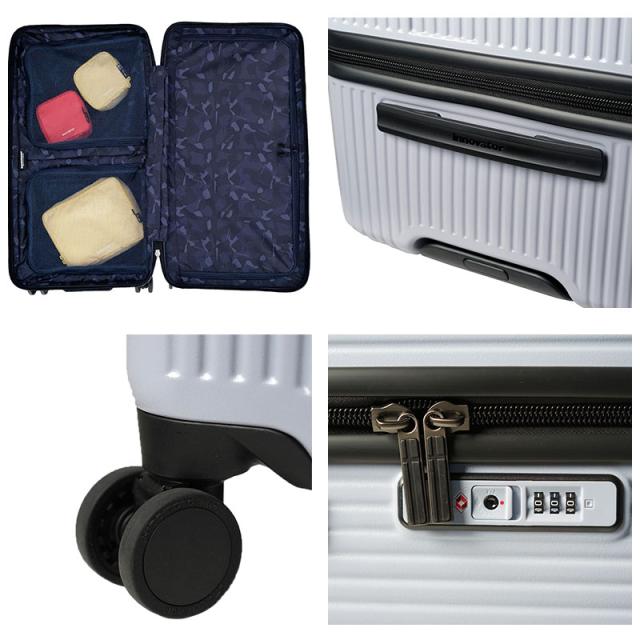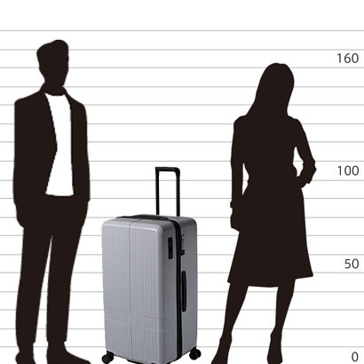 大容量ながら幅が狭くなることにより人とのすれ違い、エスカレーター、エレベーター、電車内など、スムーズに移動することができる形状。荷物多めの旅行に最適です。キャリーバーは3段階調整が可能。