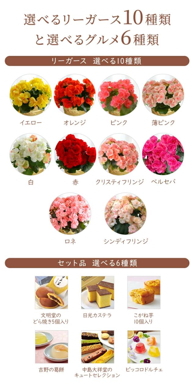 リーガース 鉢植え ベコニア 花鉢 鉢花 花 ギフト プレゼント 女性 誕生日 お祝い 母の日 リーガースベコニア ベコニアの花 室内 フラワーギフト 誕生日プレゼント お菓子 スイーツ 文明堂 どら焼き カステラ こがね芋 吉野の葛餅 お酒 梅酒