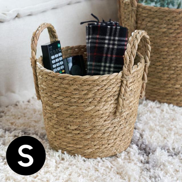 バスケット かご 持ち手付き 収納バスケット ラッシュ製(い草) Sサイズ 約 W 22.5 × D 22.5 × H 19 cm 67084