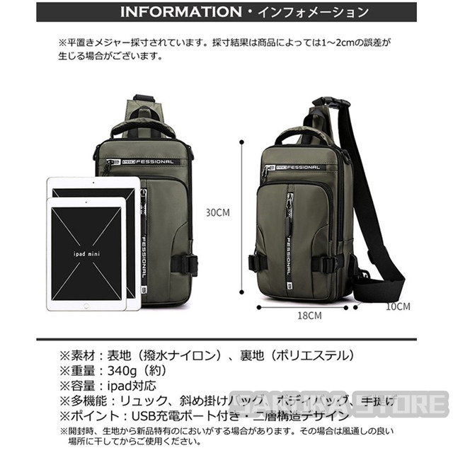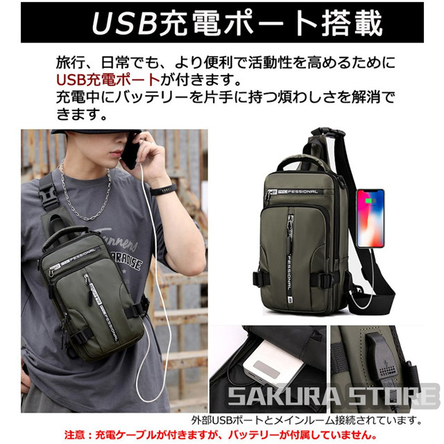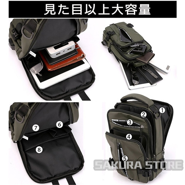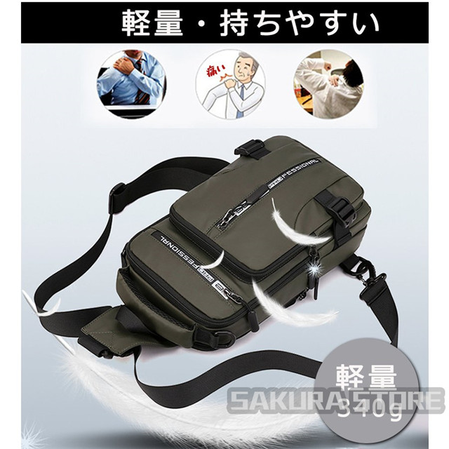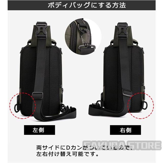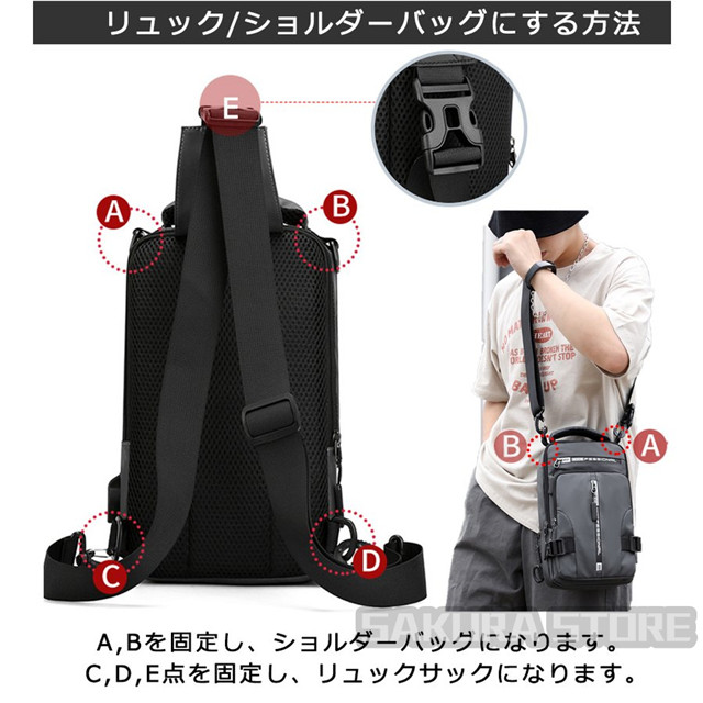 ショルダーバッグ ボディバッグ リュックサック 斜めがけ メンズ USBポート付き 撥水 軽量 iPad対応 多機能 4WAY agesugi_sfa