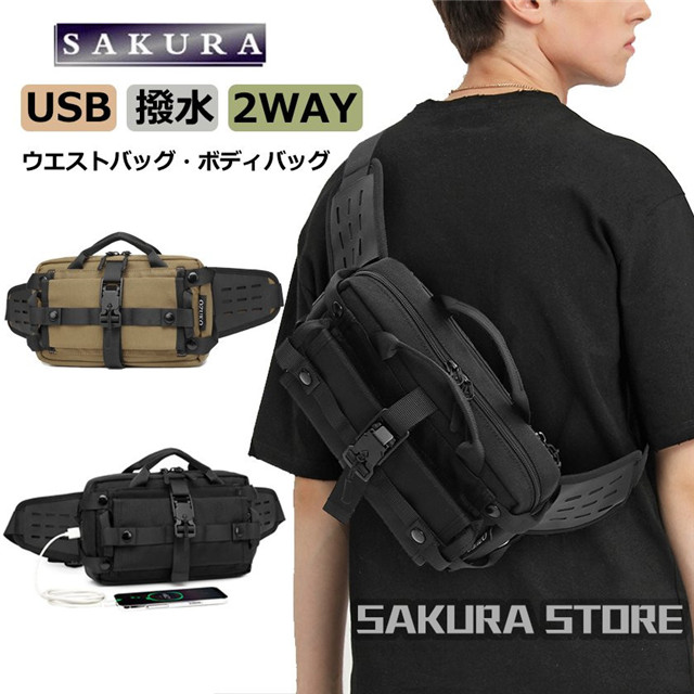 ウエストバッグ ウエストポーチ ボディバッグ ショルダーバッグ 腰ポーチ 斜め掛け メンズ USB 充電 撥水 軽量 多機能 通勤 通学 自転車 アウトドア バッグ 2way
