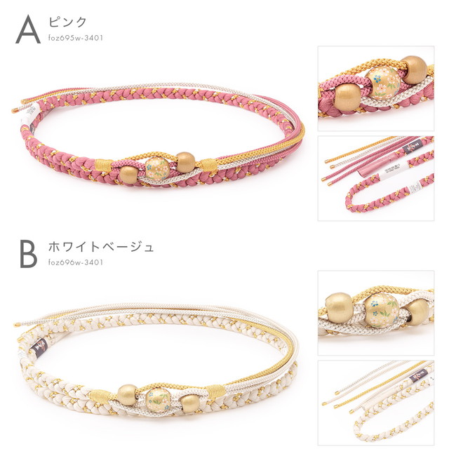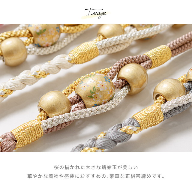帯締め 振袖用 成人式 盛装 トンボ玉 日本製 組紐 丸組 四つ組 桜 ピンク グレー モカ ベージュ 金 紫 青 帯じめ 蜻蛉玉 メール便 送料無料