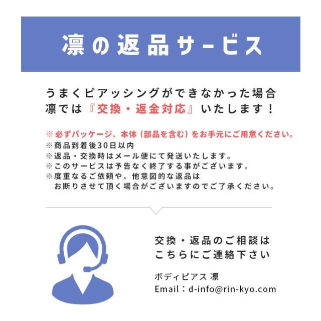 ◆医療用ステンレス製、耳たぶ用軟骨用ピアッサー(片耳用)◆ はじめてのピアッシングにおすすめ!軟骨用ピアッサー! はじめてボディピアス・軟骨ピアスを開けたい方 久しぶりにボディピアス・軟骨ピアスを開けたい方 軟骨ピアス用のピアッサーが欲しい…そんな方にオススメ! 軟骨用ボディピアス・14gの軟骨用ピアッサー(片耳用)! ◆軟骨用ピアッサー SPEC◆ ゲージ:14g / トップ:3mm / 有効軸長:8mm / 素材:医療用ステンレス製 ◆ボディピアスのピアッサーQ&A◆ Q:軟骨用ピアッサーでまっすぐ開けるコツは? A:耳の裏にあてながら開けてください。 Q:軟骨用ピアッサーで開けるのは、やはり痛い? A:痛みには個人差があります。 Q:軟骨用ピアッサーで開けた後は、お風呂に入っても大丈夫? A:開けたその日から入ってOK!ファーストピアスはホールが安定するまでは、つけっぱなしが鉄則です ※アレルギーには個人差があり、必ずしもアレルギーが出ないとは限りません。 |