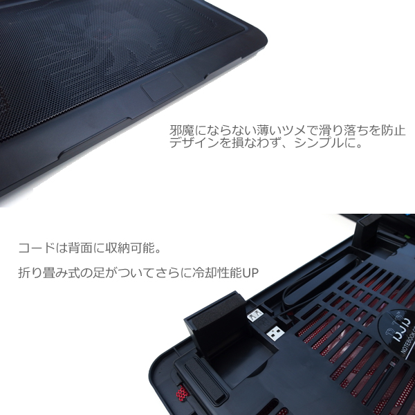 超静音!ノートパソコン用冷却ファン ノートPCスリム冷却クーラー 前面メッシュ仕様でより風通し良く 電池いらずの雄雌USBでパソコンのUSBを潰さない ケーブルや足は収納可能で持ち運び便利!