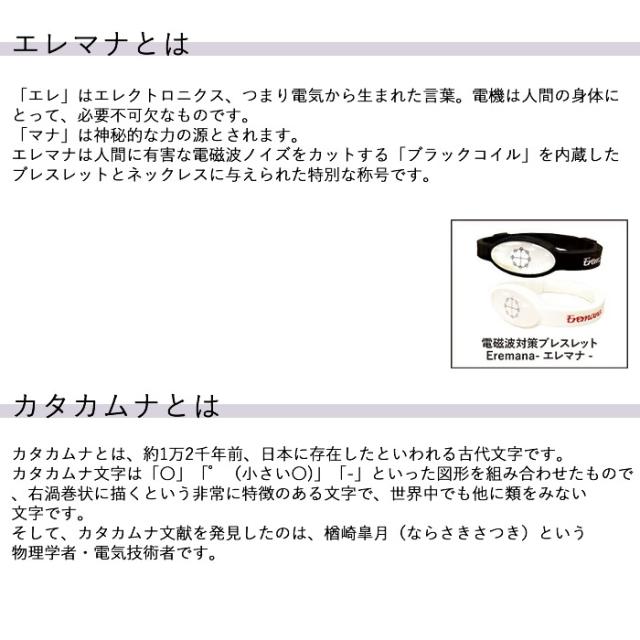 ≪ポイント20倍≫【正規販売店】Eremana(エレマナ)ネックレス (メール便送料無料) 磁気ネックレス 丸山修寛先生監修 電磁波対策 ユニカ カタカムナ文字 神話の奇跡シリーズ 電磁波 カット 丸山式ブラックアイ 麻炭