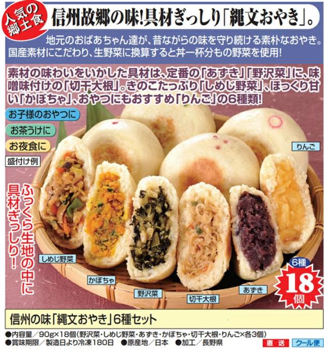 信州の味 縄文おやき 6種セット 野沢菜・しめじ野菜・あずき・かぼちゃ・切干大根・りんご 各3個 90g×18個 送料無料