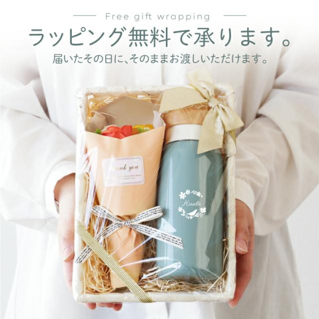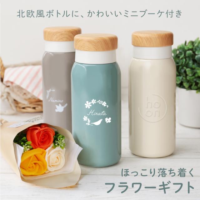 可愛い水筒があれば、毎日の気分も上がる! 名入れをすることで、世界に一つだけのマイボトルに。 だから大切な人へのギフトにぴったり。 きっと、「センスいいね!」と喜んでいただけるはず。 1. 機能性 “ 温かいものは温かく、冷たいものは冷たく、美味しく保温 ” というコンセプトのもと生まれた「ho-on(ホーン)」。 “ 保温 ”の響きから名付けられた、 あなたにちょうどいい温度で寄り添ってくれるオルゴの新しいボトルブランドです。 ホーローのようなレトロ感のある外観をしていますが、 ステンレス 素材で作られています。 丈夫で錆びにくいのはもちろん、 真空二重構造の魔法びんなので、保温・保冷効果も抜群。 長時間美味しい温度をキープするので 持ち歩きに最適な水筒です。 スクリュー式のふたは大きめで開けやすく、 飲み口部分は口当たりのいい樹脂製。 パッキンまで取り外しができるので、 洗いやすい うえに衛生的にお使いいただけます。 ファッション性と実用性を兼ねたステンレスボトルは、 普段使いにも丁度いいので、 マイボトルとして愛用していただけることでしょう。 2. キッチンから飛び出したようなキャニスター風ボトル キャニスターとは調味料を保存するふた付きの容器のこと。 陶器やガラス製のものが多く、デザイン性も高いことから インテリアとしても人気の キッチン雑貨 です。 そんなキャニスターをイメージして作られたのが ho-onのキャニスター風マグボトルです。 ふくらみのあるフォルムが瓶のようでかわいらしく、 ボトルキャップもあたたかみのある木目調で素敵。 カラーは3色展開の ・クリーム ・グレー ・アッシュグリーン 年齢問わずどんな方でも使いやすい 落ち着きのあるスモーキーカラーです。 まるでカントリーキッチンから登場したかのような素朴で着飾らない雰囲気に、 ほっこり心が和みます。 生活空間にも柔らかな空気を運んでくれるはず。 3) ソープフラワーブーケ 箱を開けた瞬間に包まれる、優しい石鹸の香り。 花びら一枚一枚がせっけんで出来ている観賞用の花束です。 もちろん生花の様に水替えなどの必要無く、手間がかかりません。 まるで本物のお花の様な美しさがお手入れ不要でずっと楽しめます。 ※香りは時間と共に薄れていきます。 枯れる事が無いお花、だからプレゼントにぴったりです。 それぞれに色が異なる3輪のローズが花束に。 ・ フランボワーズ 女性好みナンバー1はやっぱりピンク。 華やかな印象です。 ・ レッド ロマンチックなシーンに 赤の薔薇はぴったり。 ここぞという時の選択に。 ・ ブルー 媚びない女性にぴったりな青色。 大人な印象です。 ・ オレンジ 元気いっぱいなビタミンカラー。 明るい気持ちになれる 黄色とオレンジが印象的。 ・ グリーン 発色の良い黄緑色。 お疲れ気味の方におすすめな癒しカラーです。 ・ パープル シックな雰囲気漂う紫色。 落ち着いた大人の方におすすめです。 どの色も鮮やかで美しい色合いに心惹かれます。 [ こんなシーンにおすすめ ] ・ 女友達への 誕生日プレゼントに ・ 彼女への クリスマス ホワイトデー のギフトとして ・ おかあさん ママ 母親 母 義母 お義母さん への 日頃の感謝を込めて ・ 30代 40代 50代 60代 70代 母の日プレゼント に ・ オフィス ドライブ で テイクアウトコーヒー を愉しむ方に ・ 上司 先輩 後輩 の 転勤祝い 昇進祝い 定年退職 退職祝い の ギフトとして |