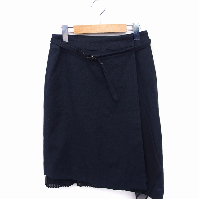 【中古】ルージュヴィフ Rouge vif ラップスカート 巻きスカート 裾プリーツ ひざ丈 綿混 ウール混 1 ネイビー 紺 /FT