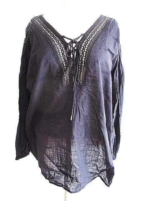 【中古】グリーンレーベルリラクシング ユナイテッドアローズ green label relaxing ブラウス カットソー 刺繍 リボン 黒 レディース