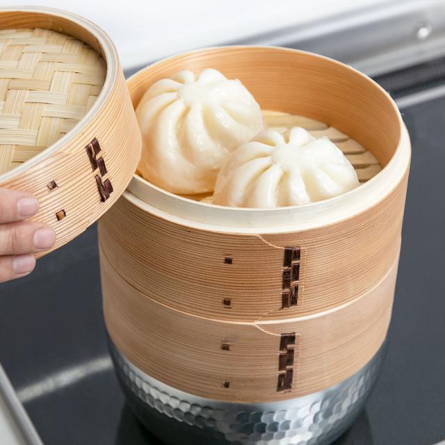 天然素材ならではの木の香りを楽しむことができる柳杉製の中華セイロセットです。セイロで蒸すだけで、食材の旨味を引き出してくれるのでシンプルだけど美味しく調理できます。調理後はそのまま食卓に出せるので、お皿に移し替える手間がなく便利です。毎日の調理はもちろん、おもてなし料理にもおすすめです。