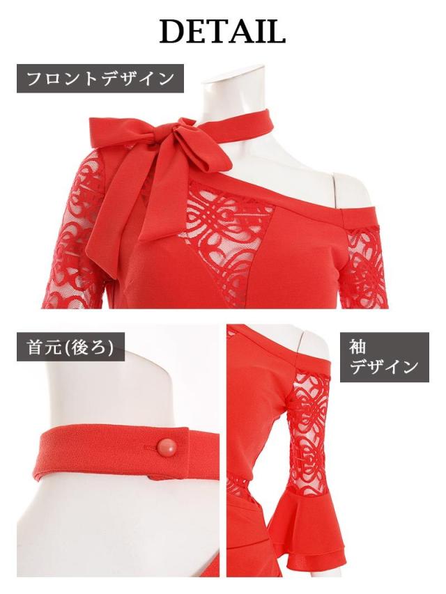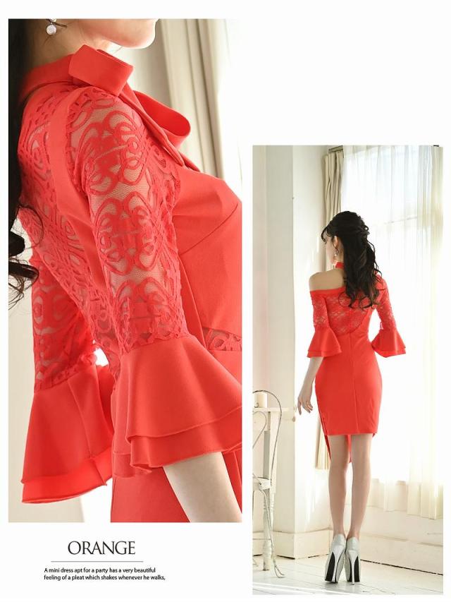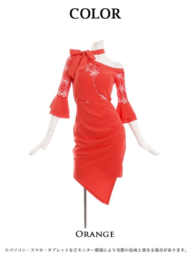 ☆胸元の透け感がセクシーさを引き立て、ビビッドなブラッドオレンジカラーが鮮やかさを演出。