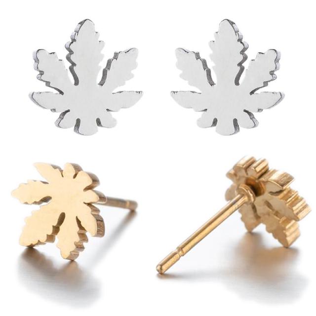 マリファナやメープルの葉をモチーフにしたステンレス素材のスタッドピアス。