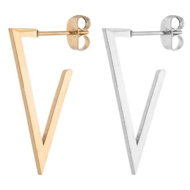 大きな三角形のフレームを模ったシンプルでプレーンなステンレス素材のスタッドピアス。