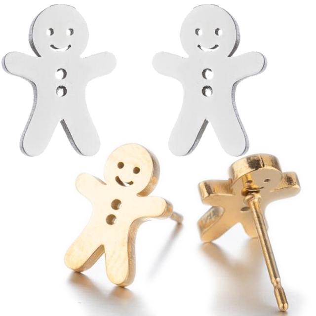 人型のヌイグルミをモチーフにした可愛いキャラクターのようなステンレス素材のスタッドピアス。