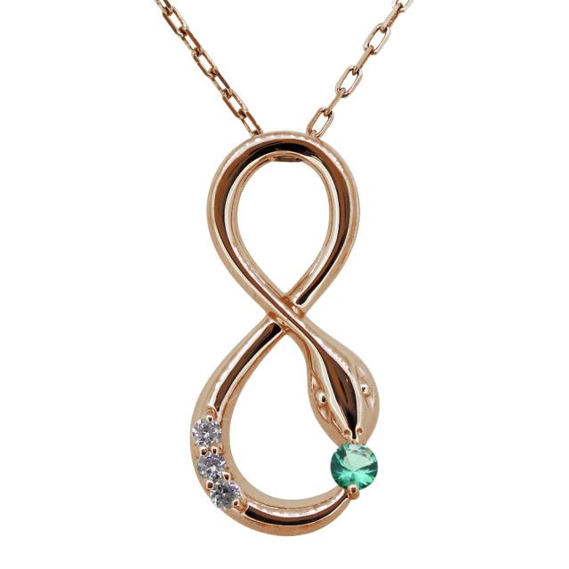 18金 ネックレス レディース インフィニティ 18k 蛇 へび エメラルド