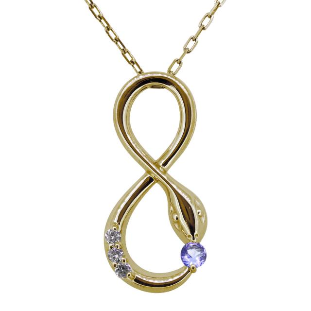 ネックレス レディース 蛇 ヘビ 10金 タンザナイト 誕生石 12月 ペンダント 無限