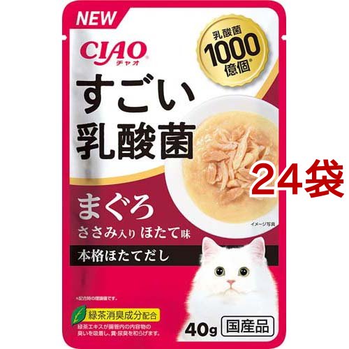 CIAO すごい乳酸菌 パウチ まぐろ ささみ入り ほたて味(40g*24袋セット)[キャットフード(ウェット)]