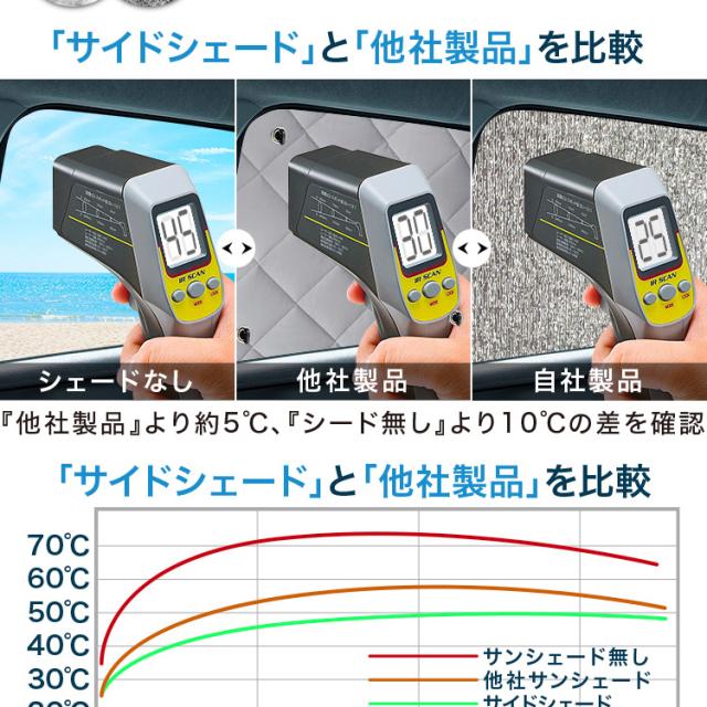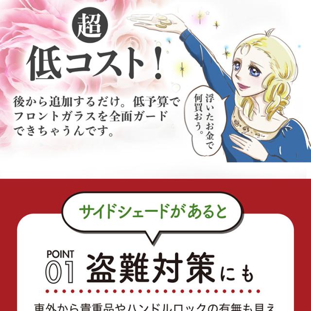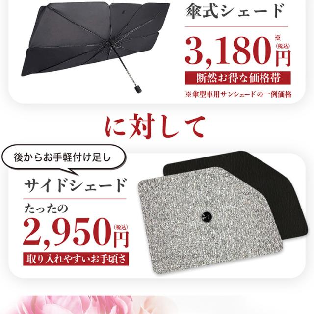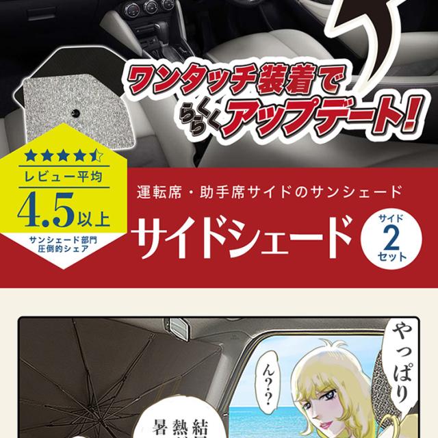 | ★傘シェードや、ロールサンシェード、汎用サンシェードをご使用の方、サイドガラスもサンシェードがほしいと思いませんか?サンシェード本体に、縫い目や折り目が無い、シームレスな「サイドシェード」が誕生しました。車内の着替え、車内の宿泊、盗難防止効果、夏の太陽光から愛車を守りたい、車中泊でプライバシーを守りたいときに役立ちます!カーテンと違ってレールを付ける必要もございません。吸盤による簡易脱着なので誰でも簡単に何度でも装着できます。海、サーフィン、キャンプ、スノボ、スキーに大活躍まちがいなし! 【商品名】 サイドシェード 【商品内容】 1.運転席ガラス面1枚 2.助手席ガラス面1枚 3.吸盤2個 【適合車種】 ★車種別の専用設計の為、カートに入れる際は一覧からお間違いのないようお選びください。 ※適合車種のラインナップは順次拡張予定です。 【ご注意ください】 1.本商品は、取り付け不可以外のクレーム、返品等はお受けできません。 2.走行中は、視界のさまたげになりますので、絶対にご使用にならないでください。 3.本商品は、簡易吸盤で装着するため、ガラス面とシェードに、隙間ができる場合がございます。 ※完全に光りを遮断、外から見えなくなるわけではありませんのでご注意ください。 4.吸盤がガラス面につきにくい時は、表面に水分を含ませると効果が期待できます。 5.装着の際は、必ずアルミ面を外側にしてください。黒を外にすると黒フィルムが変形、剥離します。 6.車内温度が70度を超える状況でご使用されますと、黒フィルムが変形、剥離する場合がございます。 7.本製品を車外に出し、直射日光にあてないでください。変形、剥離する場合がございます。 8.収納する際は、巻癖がつくため、黒い面が外側にくるように巻いて収納してください。 9.本製品は、簡易シェード、消耗品となります。中(半年)、長期(一年以上)の耐久性は保証できません。 ※使用状況や使用年数によって、アルミや黒フィルムの変形剥離、経年劣化が起こります。 ※ピラーガラス(小窓)はセット内容には含まれませんのでご注意ください。 ※本製品における事故、不具合、損失等については一切その責任を負いません。 【シームレスサンシェード、サイドシェード、シームレスライトの取り付けに関してのご注意】 本製品は車両の窓枠より一回り大きめのサイズで生産しております。 理由として、近年のお車は、窓ガラスと内装にわずかな隙間があり、 サンシェードをその隙間に潜り込ませて装着するケースが多くなったからです。 また、取り付けに関しても、先端側に対して、押し寄せながら設置することもあり、 始点を決めると、どこかがダブつき、一部を上から被せるように装着する場合もございます。 ガラス形状よりオフセットして生産した場合、至る所に光漏れや大きな隙間が生じるリスクがあるため 仕様としてこのような形状で生産されております。 また、これらの方法以外で、ドアを開いてからサンシェードを配置してドアを閉めることでシェードを挟み込み 固定する場合もございます。挟み込みや覆い被せる装着は、シェードがくの字に変形し、吸盤が外れやすくなります。 裁断誤差、車両の個体差もあることから、柔軟な設置ができるよう考慮されておりますので 商品の特性上、ご理解の上ご注文いただけますようお願い申し上げます。 |