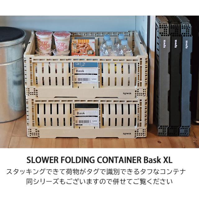 SLOWER スロウワー 収納ボックス フォールディング コンテナ Bask XL 折りたたみケース 大型 バスクXL おしゃれ 大容量 スタッキング 頑丈 アウトドア コンパクト インテリア 収納術 新生活 折り畳み ストレージボックス 大型 積み重ね 省スペース おもちゃ箱 小物入れ 工具 道具箱 ガレージ 整理 BBQ 屋外 屋内 キャンプ レジャー バーベキュー おうちキャンプ 野外 運動会 引っ越し