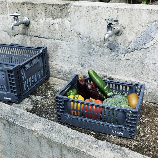 新作 SLOWER スロウワー 収納ボックス フォールディング コンテナ Bask XL 折りたたみ ケース 箱 カゴ バスクXL おしゃれ 大容量 プラスチック スタッキング 頑丈 アウトドア 作業 コンパクト バーベキュー おうちキャンプ 野外 運動会 引っ越し