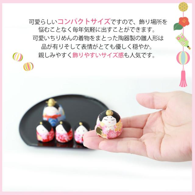 日本製雛人形 コンパクト 平安 ちりめん 雛飾り ひな人形 小さい ミニ 雛祭 親王飾り 三人官女 インテリア 縁起物 置物 陶器 飾り台 台座 ひな祭り 飾り 人気 雛飾り 初節句 かわいい おひなさま お雛様 超コンパクト
