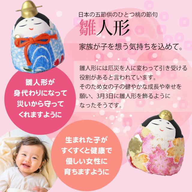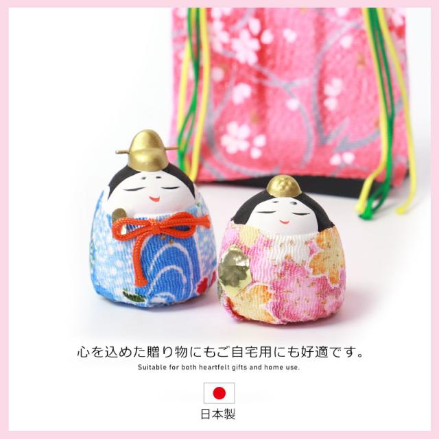 | 商品説明 | 女の子の健やかな成長と、末永い幸福を祈って飾る縁起物の雛人形です。 大切な家族の幸せを願う心温まる日本の伝統行事。思い出を彩る大切なワンシーンになります。 可愛らしいコンパクトサイズですので、飾り場所を悩むことなく毎年気軽に出すことができます。 手作りの陶器製の雛人形は品が有りそして表情も優しく穏やかで、親しみやすく飾りやすいサイズ感も人気です。 お部屋に可愛らしさをプラスしてくれる、インテリアのようなおしゃれなデザインのお雛様はどんなお部屋にも馴染みます。 手のひらに乗るようなコンパクトサイズですが、細工が細かく丁寧な仕上がりです。 懐かしいぬくもりもあり、一生楽しめる 陶雛のお雛様をぜひ飾ってみてください。 心を込めた贈り物にもご自宅用にも好適です。 3月3日の雛祭りには雛人形を飾るご家庭が多いと思います。 いったいどういう意味があるのでしょうか?? 雛人形には厄災を人に変わって引き受ける役割があると言われています。 そのため女の子の健やかな成長や幸せを願い、日本の五節供のひとつ桃の節句3月3日に雛人形を飾るようになったそうです。 旧暦の3月3日が現在の4月上旬にあたり、ちょうど桃の花が開花する時期と重なったため、今日も桃の節句という美しい名で親しまれています。 雛祭りの語源はもともとは上流階級の中のあそび「ひいなあそび」であったとも言われていますが、現代の雛人形には、「何かあった時、雛人形が身代わりになってその子を災いからまもってくれますように」「生まれた子がすくすくと健康で優しい女性に育ちますように」と家族が子を想う気持ちが込められているのです。 |