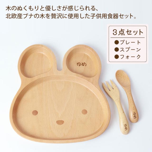 名入れ無料 キッズプレート 3点セット 天然木製 スプーン フォーク プレート 北欧産ブナの木 白木 キッズ ベビー食器 子供用食器 木製 お皿 かわいい 赤ちゃん 離乳食 男の子 女の子 子ども 子供 出産祝い お食い初め 送料無料