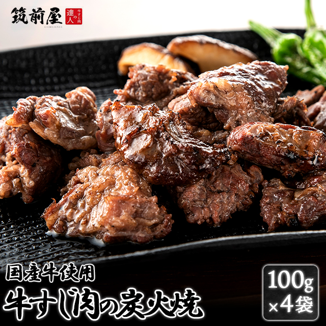 国産 牛すじ専門店 筑前屋 牛すじ肉 炭焼きおつまみ 100g×4袋 常温 ポスト投函 ビーフ 肉 牛肉 牛すじ 牛スジ