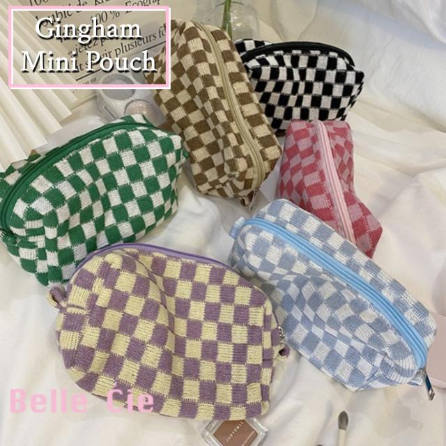カラフル ギンガムチェック ミニポーチ レディース 韓国ファッション 小物入れ 化粧品入れ ポーチ 小さめ 小物いれ シンプル おしゃれ チェック柄 かわいい 軽い 黒 ブラック グリーン 緑 パープル 紫 ピンク サックス ポイント消化 送料無料