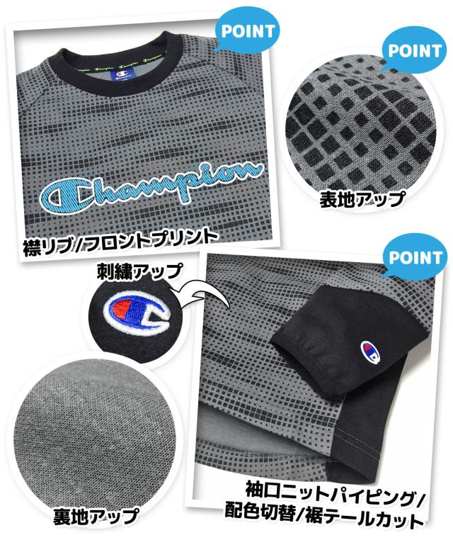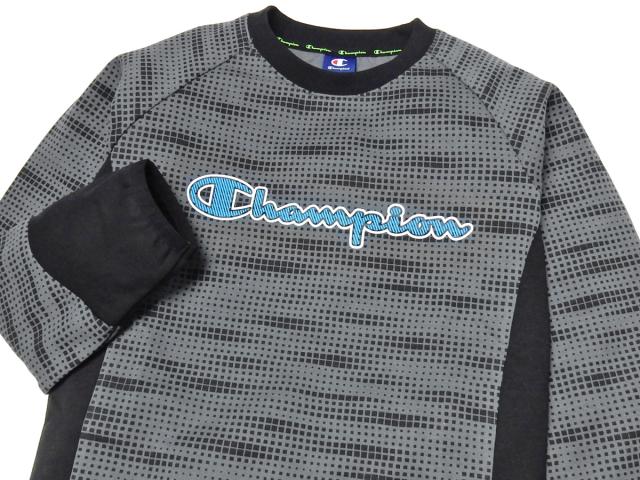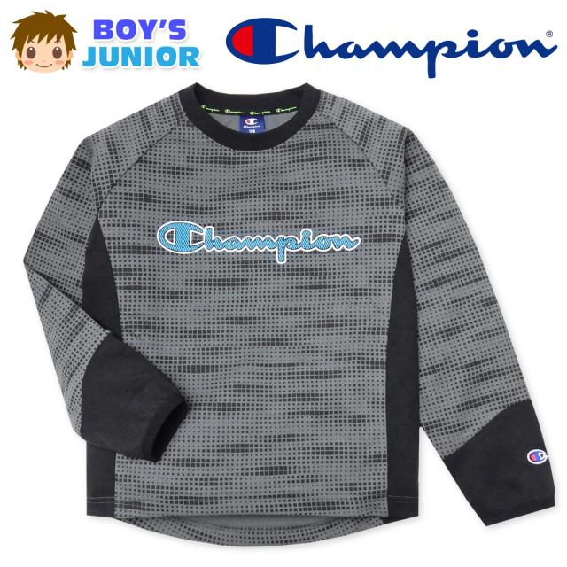 【送料無料】男児 ジュニア ダンボール素材 長袖 Tシャツ Champion/チャンピオン スウェット デジタル迷彩調総柄 配色切替 子供服 男の子 140cm 150cm 160cm td-0365b-cc【メール便対応】