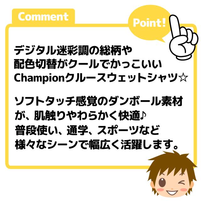 【送料無料】男児 ジュニア ダンボール素材 長袖 Tシャツ Champion/チャンピオン スウェット デジタル迷彩調総柄 配色切替 子供服 男の子 140cm 150cm 160cm td-0365a-cc【メール便対応】
