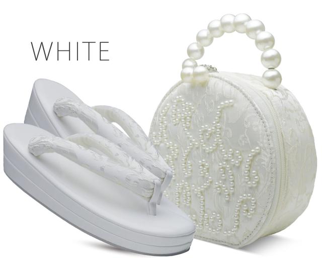 【在庫処分セール】振袖用 草履 バッグ セット パール×サテン ゴージャス 選べる4色 白 黒 紫 ピンク 振り袖 袴 ビーズ フリーサイズ 派手系
