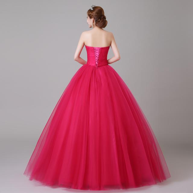 カラードレス パーティドレス ロングドレス ワンピ チュールスカート ビスチェ ピンク パニエ付 結婚式 発表会 オーダーサイズ可 D053