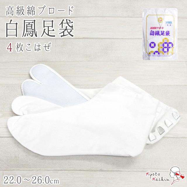 【2足までメール便発送無料】白鳳足袋 綿ブロード 4枚こはぜ 足袋 さらし裏 白 綿 日本製 高級 ブランド 白足袋 ブロード足袋 通年用 女性用 男性用 22.0〜28.0cm 小さいサイズ 大きいサイズ