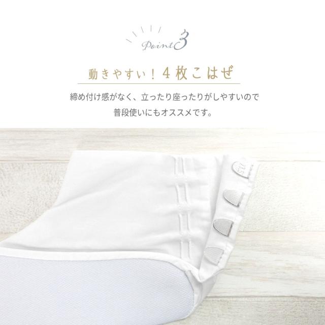 こはぜ付きの白足袋なので、フォーマルな場所やお仕事・お稽古など様々なシーンでお使いいただけます。
