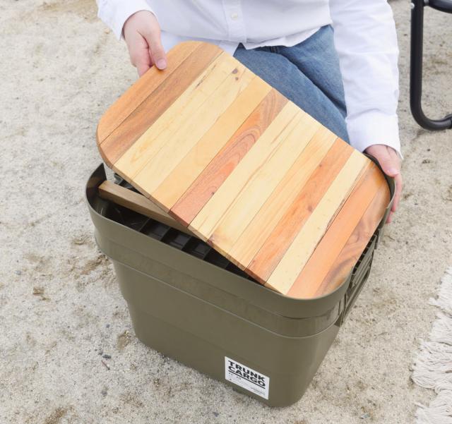 キャンプやピクニックなどアウトドアシーンで大活躍の「トランクカーゴ」(別売り)にセットできる木製のテーブルトップです。木目の美しい天然木を使用した、様々な木々を寄せ集めたようなデザインは、アウトドアシーンの雰囲気をより盛り上げてくれそうです。