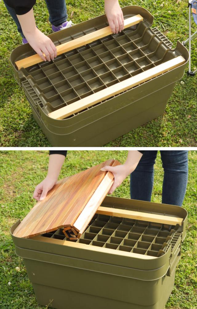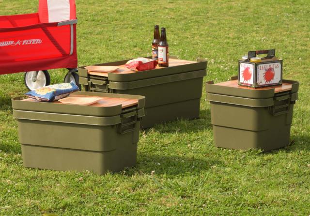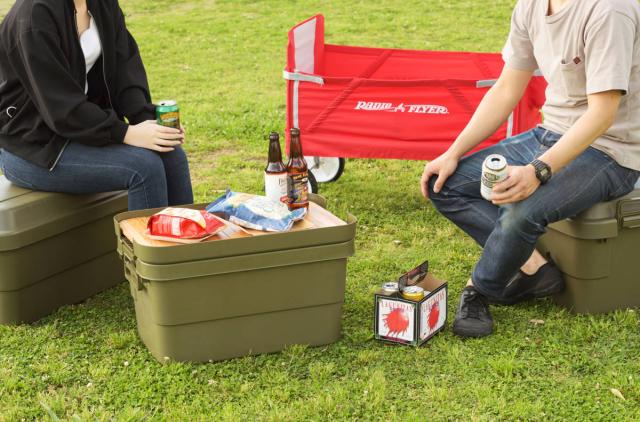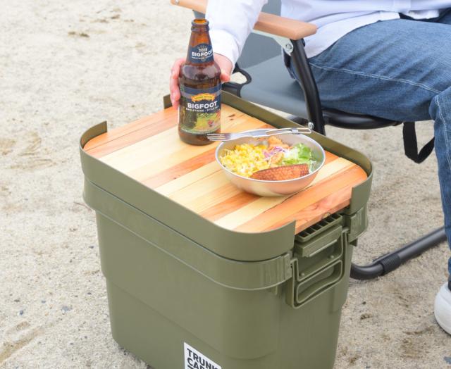 トランクカーゴのフタを裏返してセットするだけで、荷物を入れてきた収納ボックスがあっという間にテーブルに早変わりします。テーブルをわざわざ用意する必要がなく、荷物も減らせてオススメです。