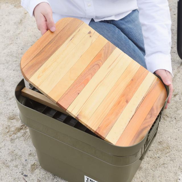 キャンプやピクニックなどアウトドアシーンで大活躍の「トランクカーゴ」(別売り)にセットできる木製のテーブルトップです。木目の美しい天然木を使用した、様々な木々を寄せ集めたようなデザインは、アウトドアシーンの雰囲気をより盛り上げてくれそうです。