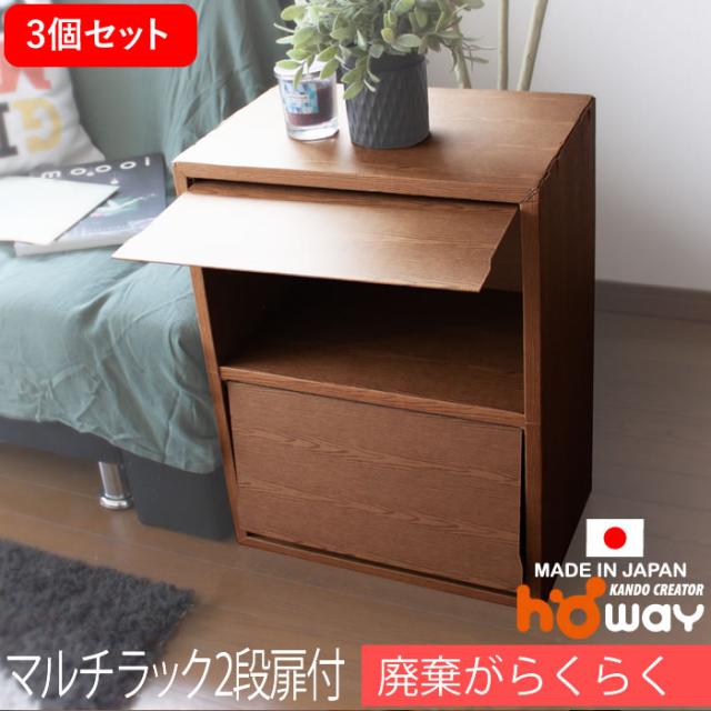 カラーボックス 扉付 マルチラック 木目3ヶセット