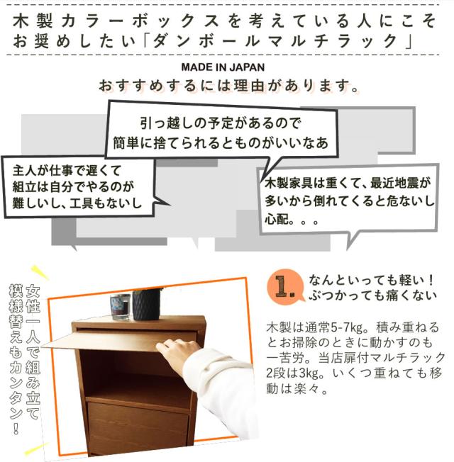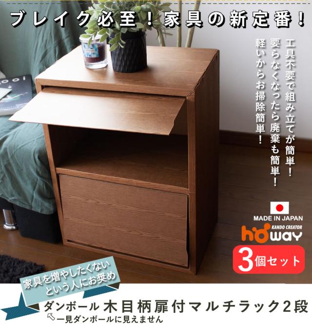 カラーボックス 2段 幅45 扉付き 3個セット ラック 棚 ダンボール 段ボール 収納 家具 段ボール家具 ダンボール家具 軽い 縦置き 横置き 収納ボックス 木目 木目柄 シェルフ 書棚 絵本 絵本ラック 引越し ホワイト ブラック ブラウン ベージュ Gravif mocume 2段マルチラック