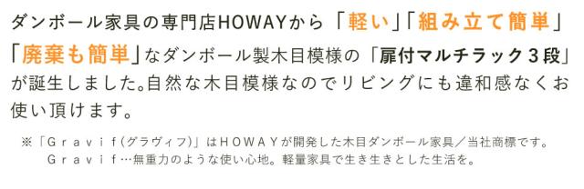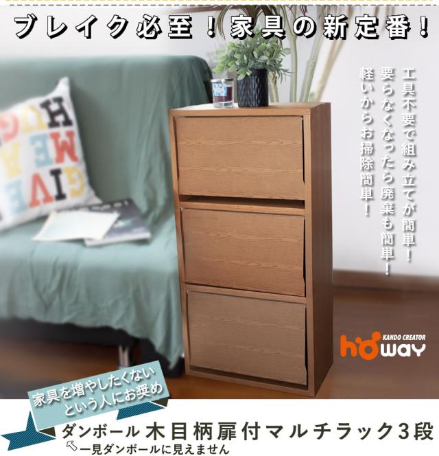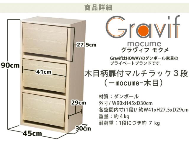 カラーボックス 3段 幅45 扉付き ラック 棚 ダンボール 段ボール 収納 家具 段ボール家具 ダンボール家具 軽い 縦置き 収納ボックス 木目 木目柄 シェルフ 書棚 絵本 絵本ラック 引越し ダンボール本棚 3段マルチラック ホワイト ブラック ブラウン ベージュ Gravif mocume