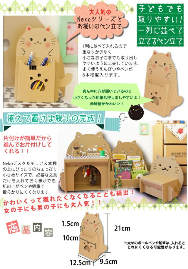 工作キット Neko ペン立て Nekoデスク ダンボール ネコ ねこ 鉛筆立て えんぴつたて 入園 入学 夏休み cam_natu