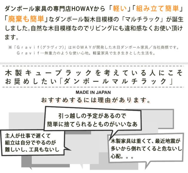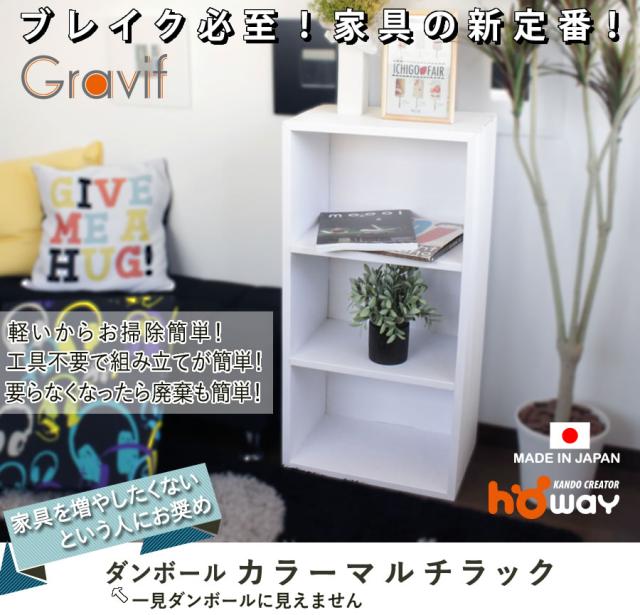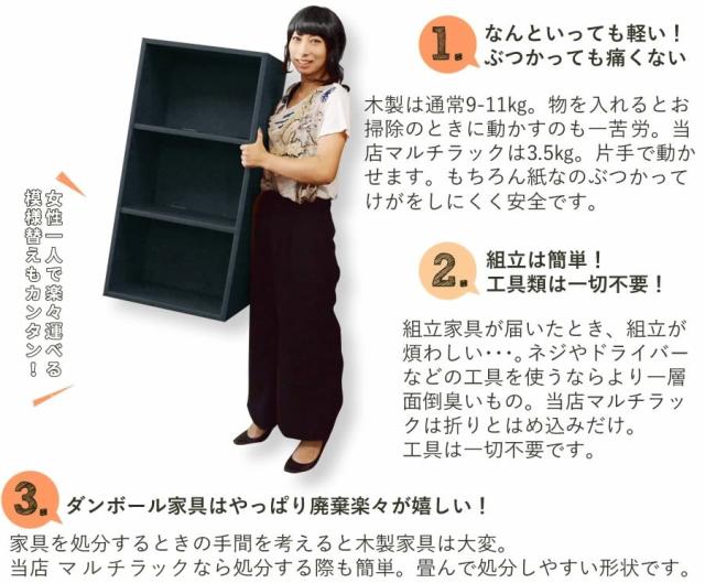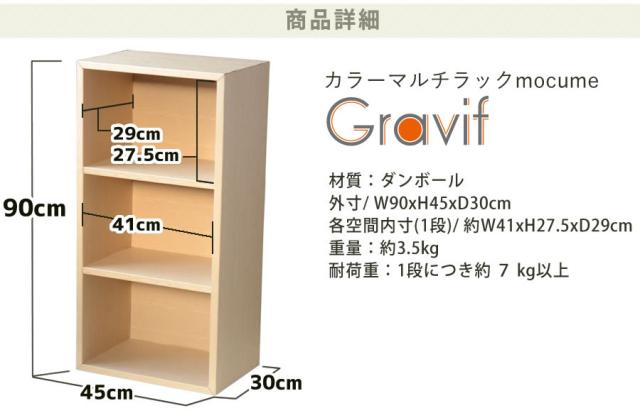 カラーボックス 3段 幅45 ラック 棚 ダンボール 段ボール 収納 家具 段ボール家具 ダンボール家具 軽い 縦置き 横置き 収納ボックス 木目 木目柄 シェルフ 書棚 絵本 絵本ラック 引越し 3段マルチラック ホワイト ブラック ブラウン ベージュ Gravif mocume