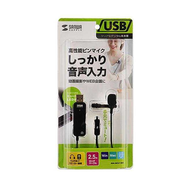 即納 代引不可 USBマイク 高性能USBピンマイク ケーブル長2.5m マイク マイクロホン 録画 動画投稿 ライブ配信 Skype インターネット通話 サンワサプライ MM-MCU12BK